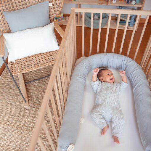 - Como es un cojín evolutivo, cuando el bebé crezca y deje de utilizar la cuna, puedes utilizarlo también en la cama montessori.